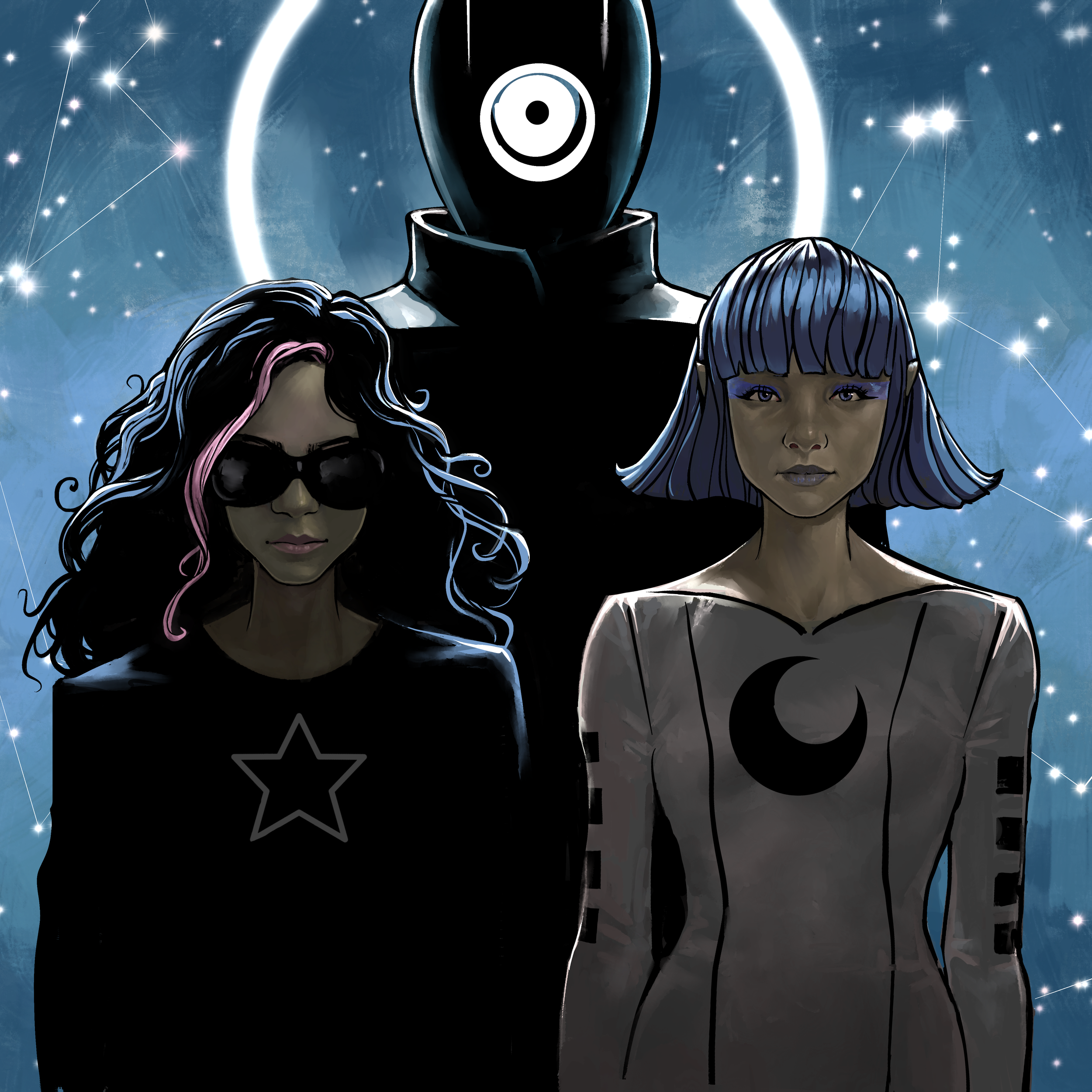 Like The Dreamfast Division, Alien Landing Party unites my art, lyrics, and music—this time with a fictional sci-fi edge. It’s a virtual cyberpunk band where each song reveals a new chapter and every visual expands the story.